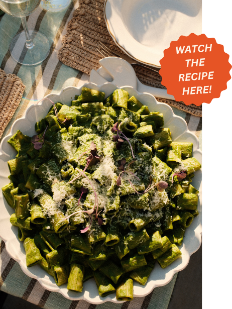 We blend blanched green veg and herbs with mascarpone, parmesan, and white beans to create an ultra-creamy, herbaceous sauce that coats every piece of pasta. The result is an emerald-green pasta that tastes like spring and looks incredible on the table.