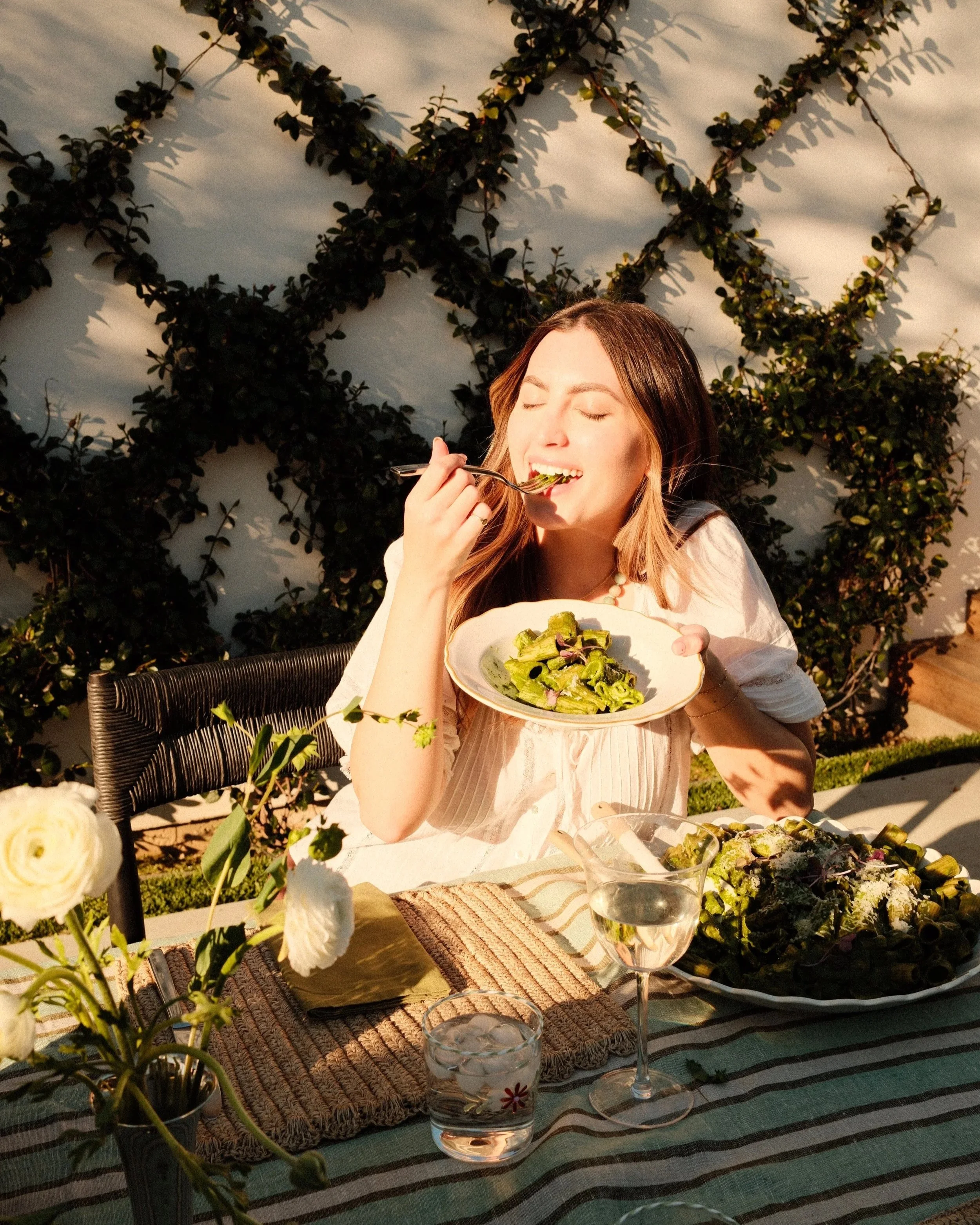 It's vegetarian-friendly on its own, but we served it with crispy sesame chicken cutlets and it was absolutely delicious. The pasta can be partially prepped ahead, which makes hosting 10x easier.